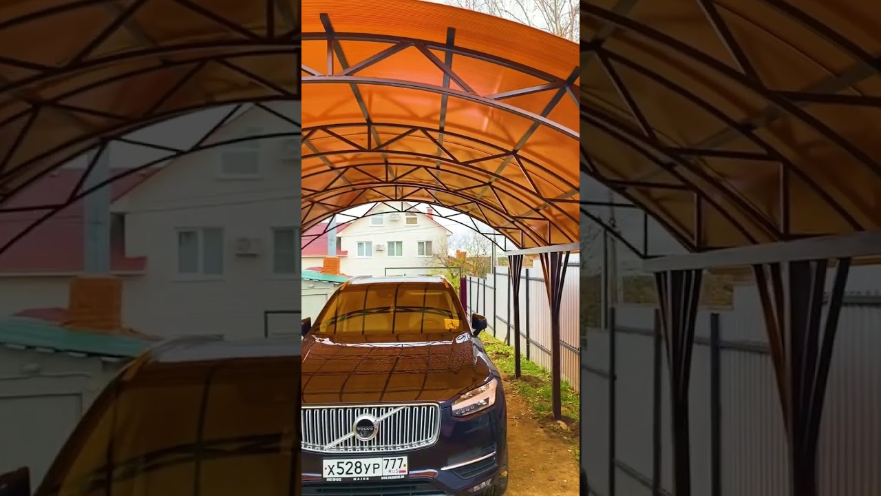 Навес из поликарбонат для одного автомобиля 6*4 арочного типа во дворе частного дома от «Спецкаркас»
