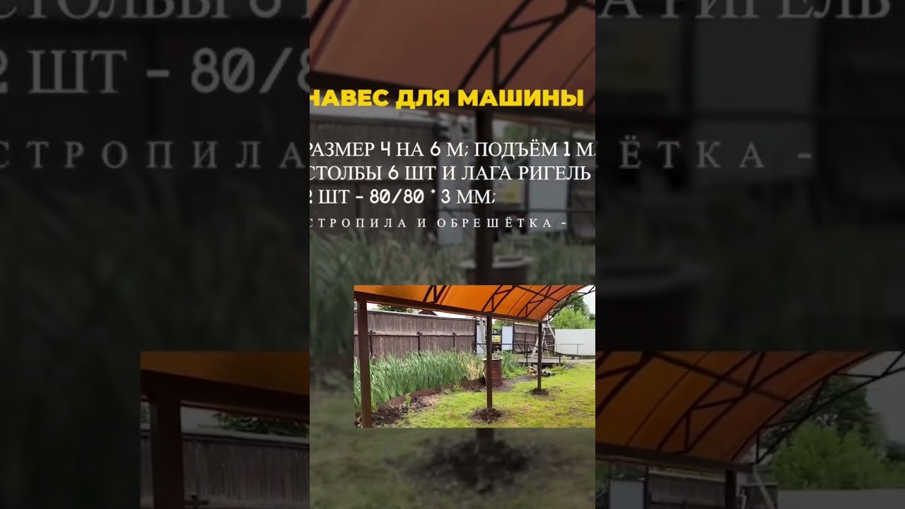 Металлический навес для машины с кровлей из поликарбоната 6*4 | Навесы из поликарбоната Спецкаркас