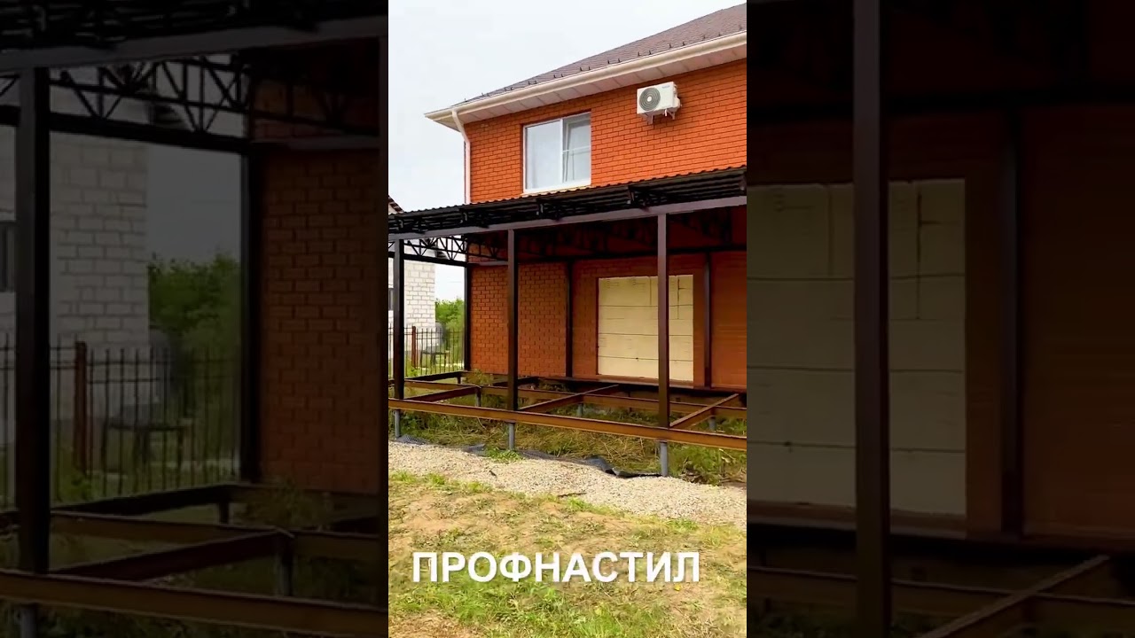 Металлический навес с кровлей из поликарбоната примыкающий к дому | Навес к дому из поликарбоната
